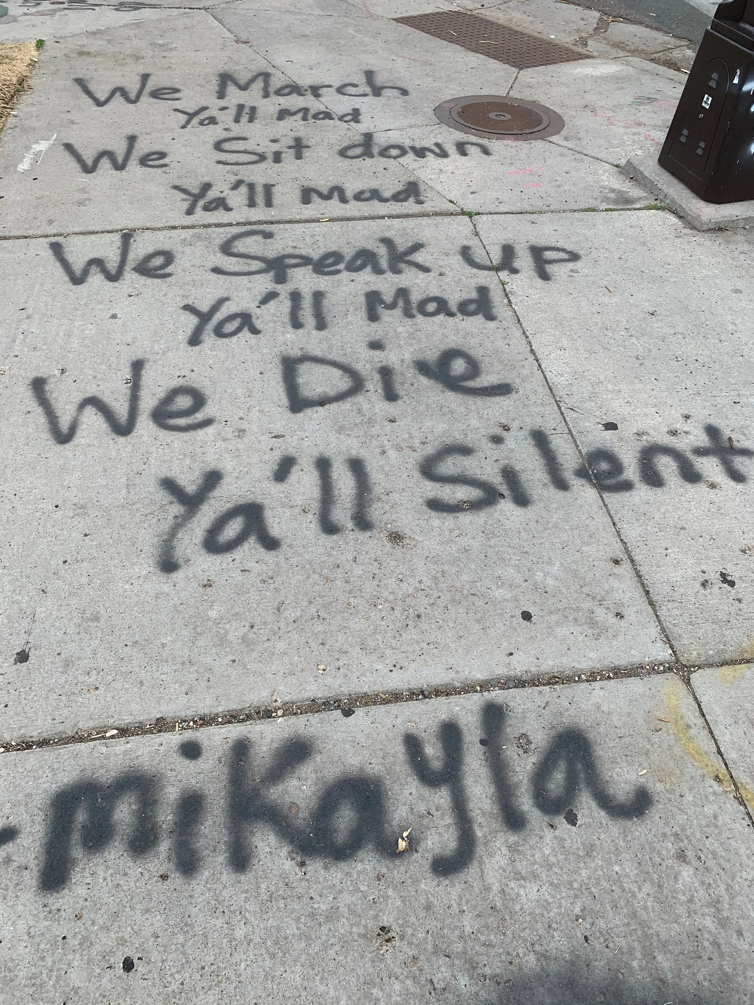 I started feeling emotion the moment I began walking up 38th Street. I could see the memorial site just ahead on the corner. Flowers, placards, graffiti, and personal notes were everywhere. There was so much to take in. I could feel the grief, rage, and despair hanging thickly in the air.